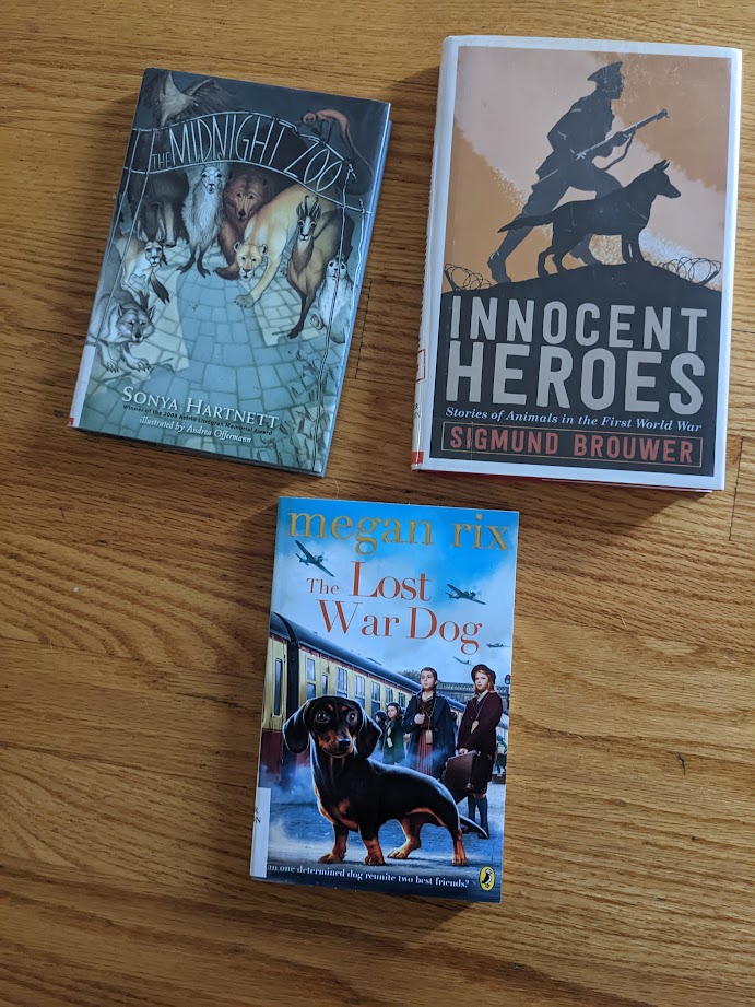 Winnie’s Great War, by Lindsay Mattick & Josh Greenhut — Written by Harry Colebourn’s great grand-daughter, Lindsay Mattick, the novel has a dual storyline similar to The Princess Bride. The main story, whimsically told from Winnie’s perspective, is interjected with dialogue between the narrator (Mattick) and her son, Cole, who was named after Colebourn. This touching novel would make a wonderful read-aloud story.